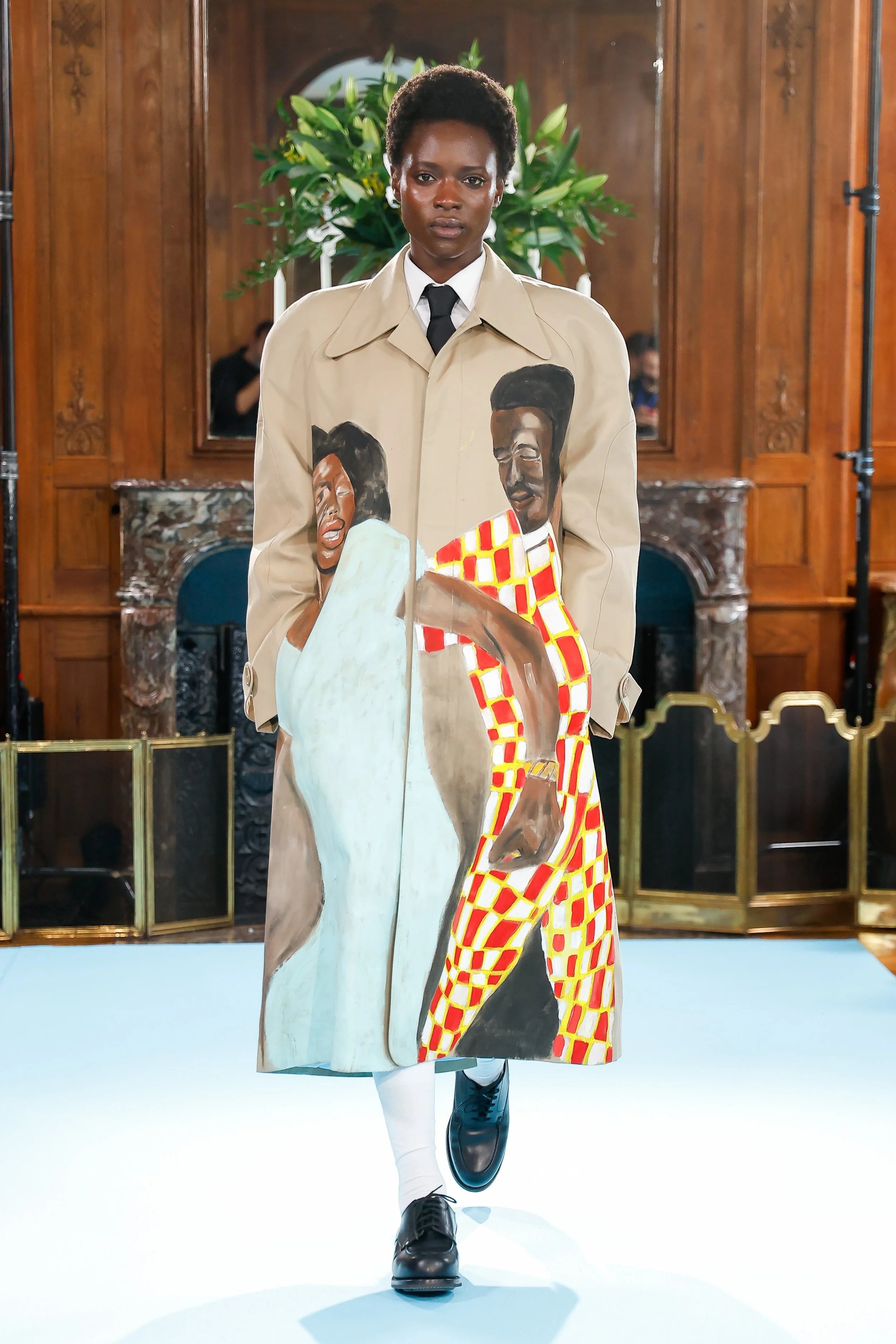 One of the standout pieces from the collaboration, a trench coat featuring hand-painted figures inspired by photographs taken during a trip to Cameroon, was later exhibited at the Metropolitan Museum of Art in New York. The garment appeared in the exhibition Superfine: Tailoring Black Style, highlighting the dialogue between contemporary fashion, art, and the history of Black style and global cultural exchange.